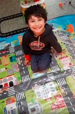 Sala Celeste construye su propia ciudad utilizando juguetes que tienen en casa.