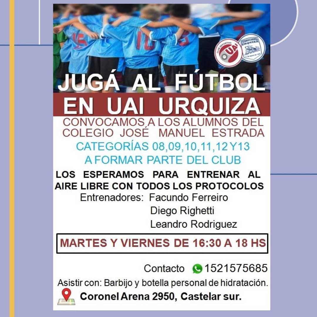 El club UAI Urquiza te está esperando para ser parte de sus equipos de fútbol. Si queres aprender , competir y divertirte hacelo en el club de tu escuela .