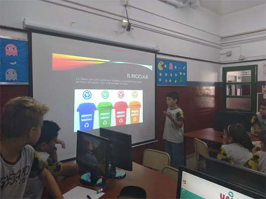 Los alumnos de 6to realizaron una investigación y exposición sobre materiales contaminantes y la importancia del Reciclado. Esta propuesta se trabajó en el Concejo de alumnos para abordar los AIC. La propuesta de los estudiantes será informar a cada grado del nivel sobre la importancia de la separación de los residuos y la forma de implementación en el patio del colegio.