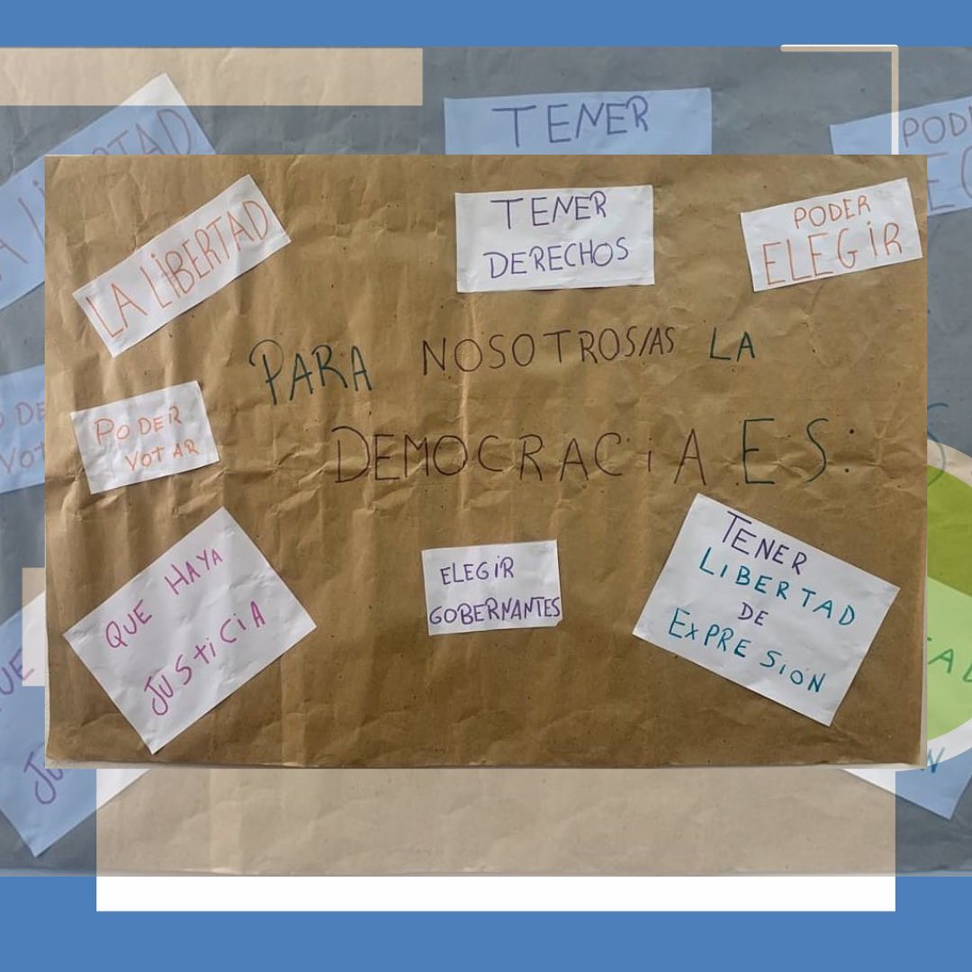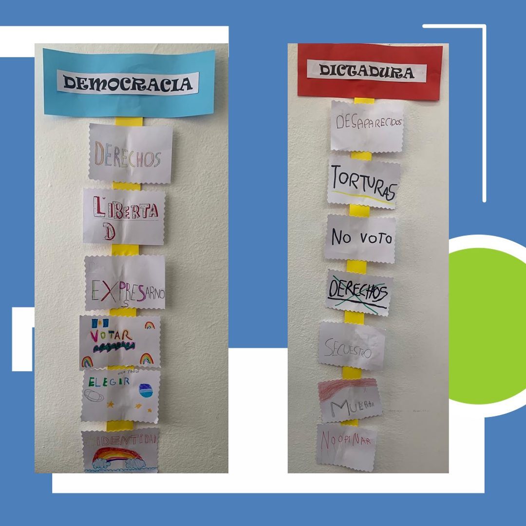 as y los estudiantes del nivel primario reflexionaron sobre “El día de la memoria por la verdad y la justicia” en el marco de los cuarenta años ininterrumpidos de democracia.