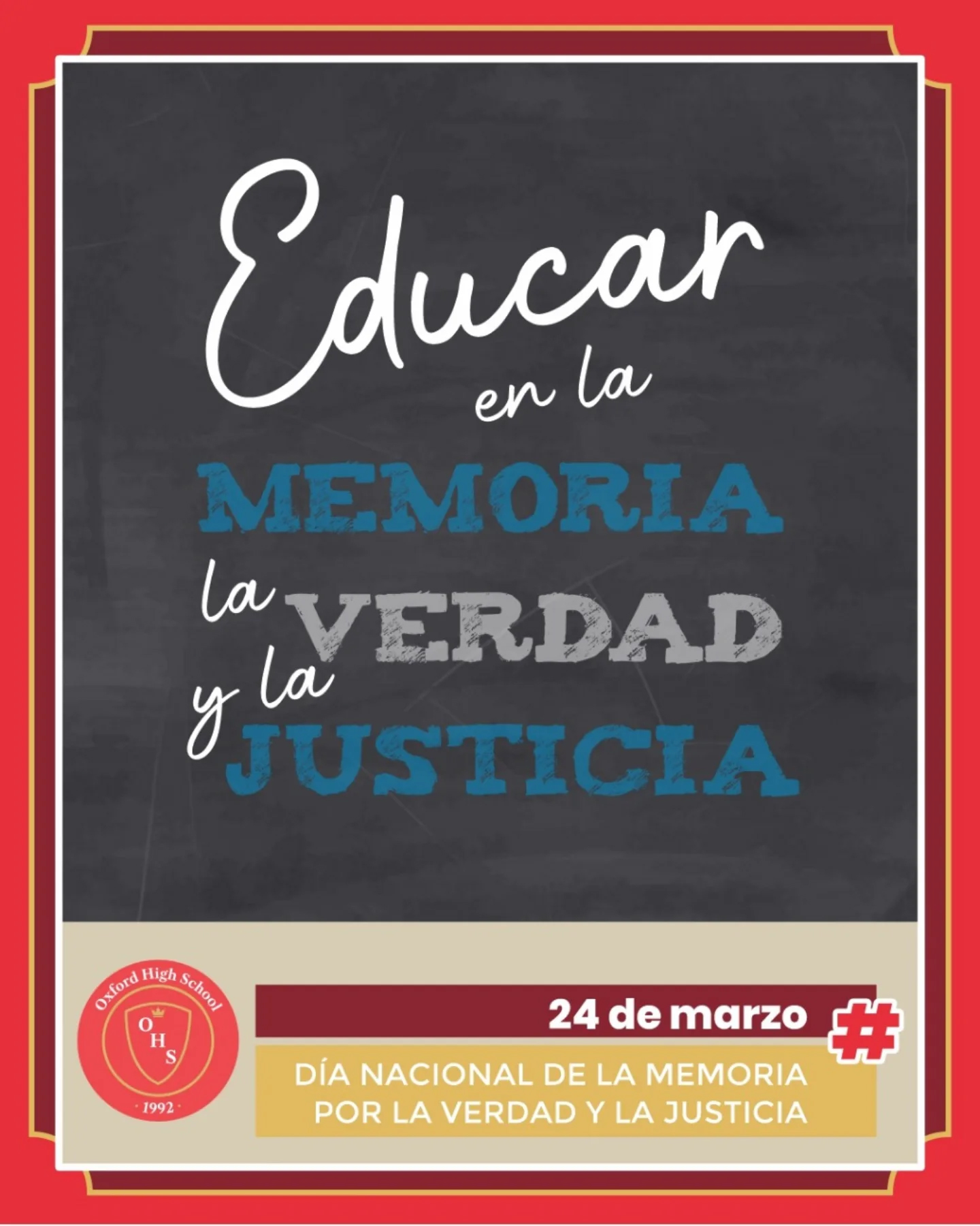 El 24 de marzo se conmemora el Día Nacional de la Memoria por la Verdad y la Justicia, con el objetivo de recordar a las víctimas del terrorismo de Estado llevado adelante por la última dictadura cívico-militar argentina, y para mantener presente la demanda de justicia. Dicha dictadura, que tuvo lugar entre el golpe de Estado del 24 de marzo de 1976 y el 10 de diciembre de 1983, fue uno de los períodos más oscuros de la historia argentina, durante el cual se produjeron violaciones sistemáticas de los derechos humanos, con más de 30.000 desapariciones de personas, y miles de secuestros, torturas en centros clandestinos de detención y privaciones ilegítimas de la libertad...