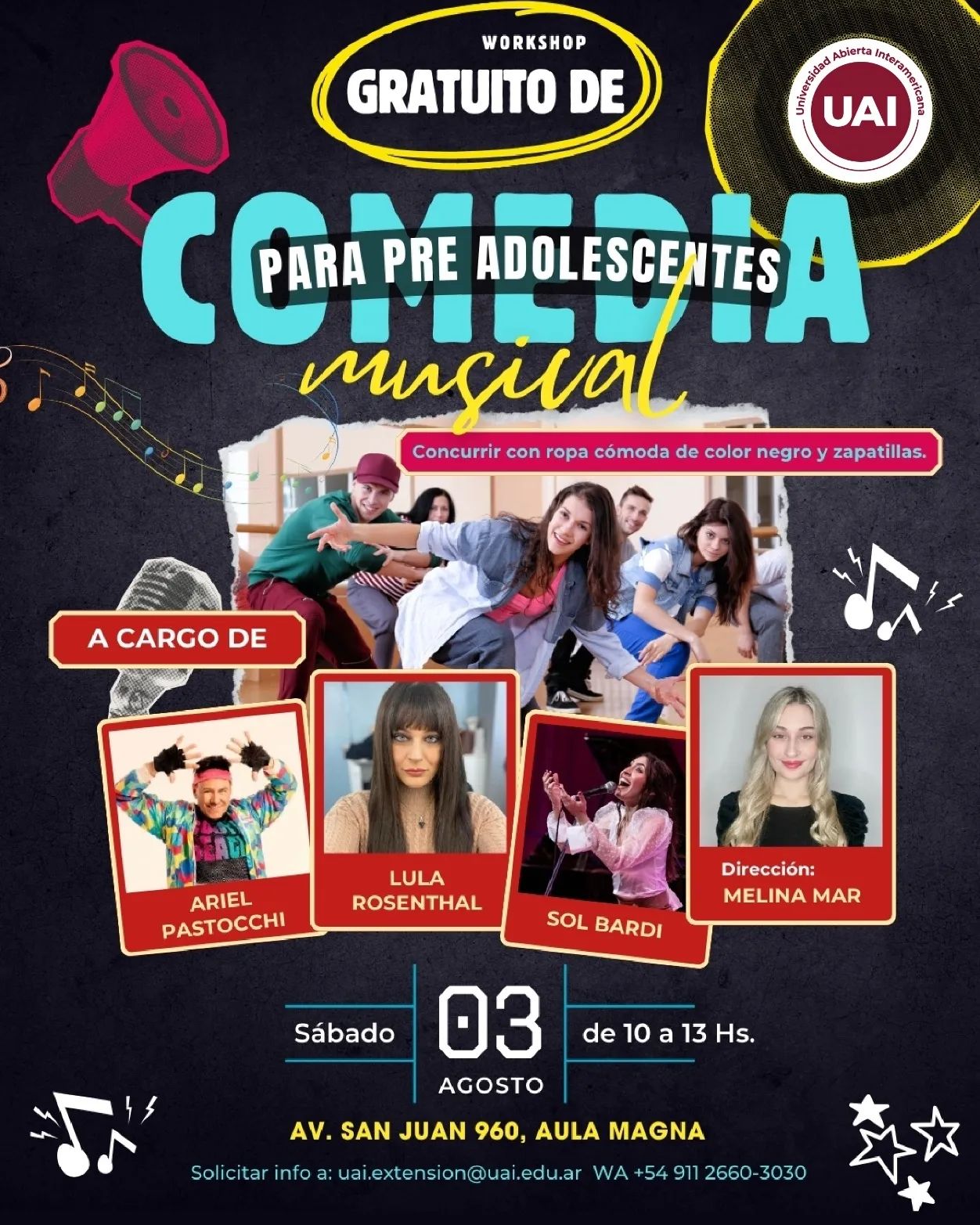 Los invitamos a participar del Workshop gratuito de Entrenamiento en Comedia Musical, que se llevará a cabo el: